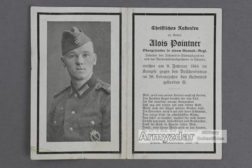 WH Death notice „Grenadier Rgt., A. Pointner'