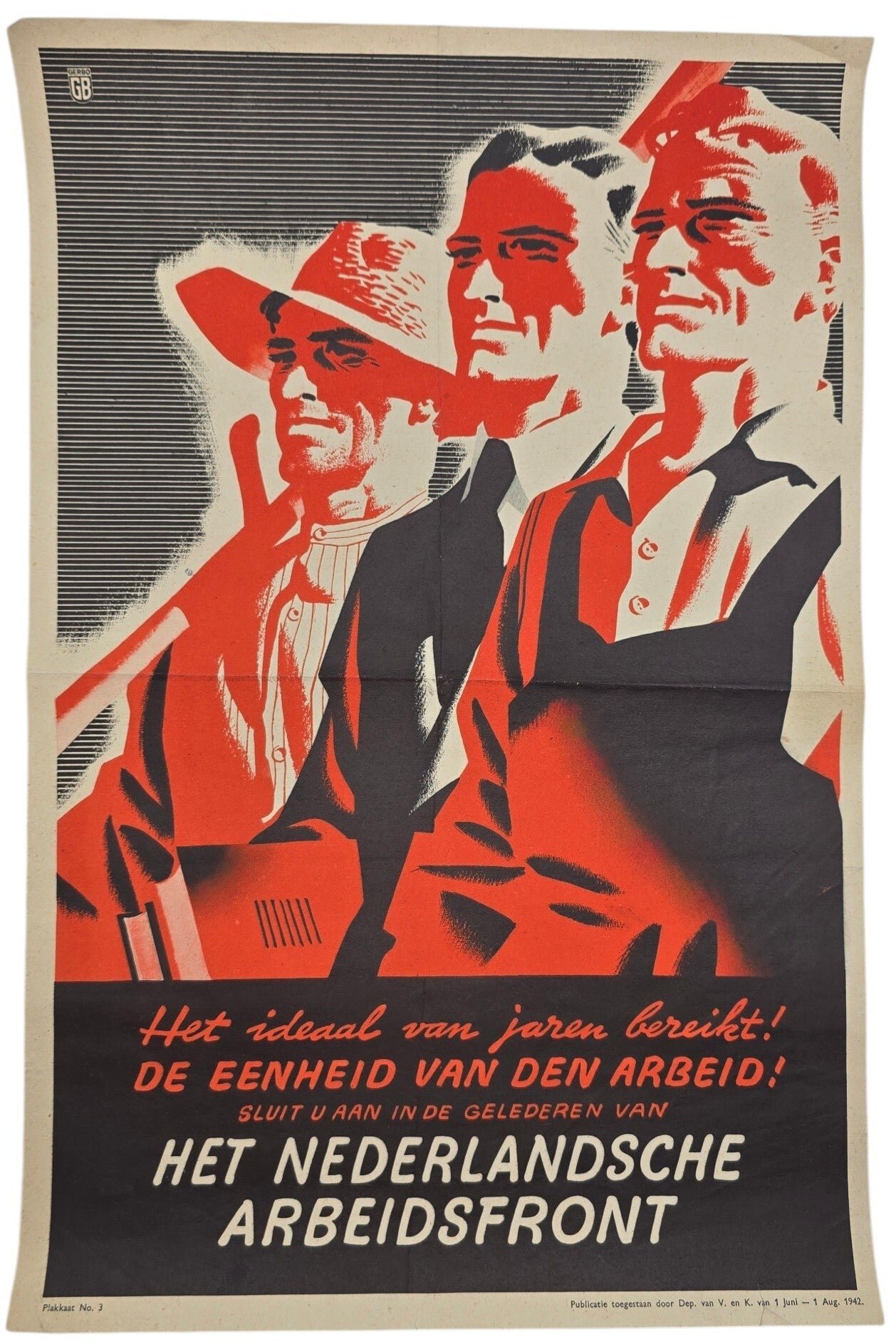 Original WW2 Dutch Collaboration NAF Poster - De Eenheid van den Arbeid! Het Nederlandsche Arbeidsfront (1942)Approximately 44 x 29 cmGerbo. Plakkaat No. 3Originele Wo2 Nederlandse Collaboratie NAF Poster - De Eenheid van den Arbeid! Het Nederlandsche Arbeidsfront (1942)Ongeveer 44 x 29 cmGerbo. Plakkaat No. 3