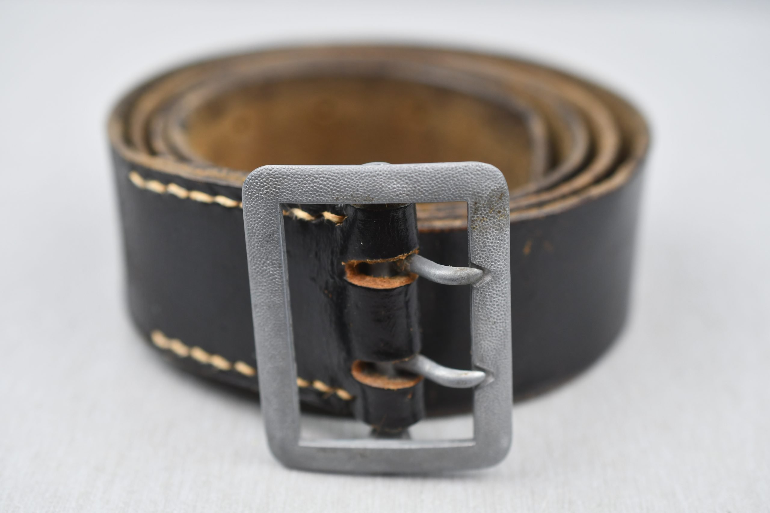 Light worn officer double claw belt executed in black leather. Size 115cm.