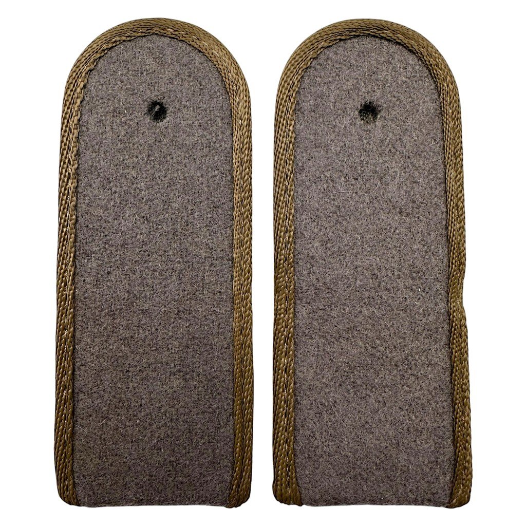 Original pair of shoulder boards for the field uniform of a Soldat in the National People's Army (NVA) of the former East Germany (DDR), dating from the Cold War period.These shoulder boards are made in the characteristic grey-green field uniform cloth and feature the matching branch-colored piping along the edges.The simple design without rank stars indicates the rank of Soldat (enlisted man).The reverse is finished with the typical attachment tongue for mounting onto the Felddienstbluse (combat tunic).An interesting collectible for collectors of DDR, Warsaw Pact and Cold War militaria, as well as enthusiasts of German military uniform insignia and rank distinctions.Article number: 18450Originele Koude Oorlog DDR Duitse NVA onderofficier schouderstukken voor gevechtsuniform