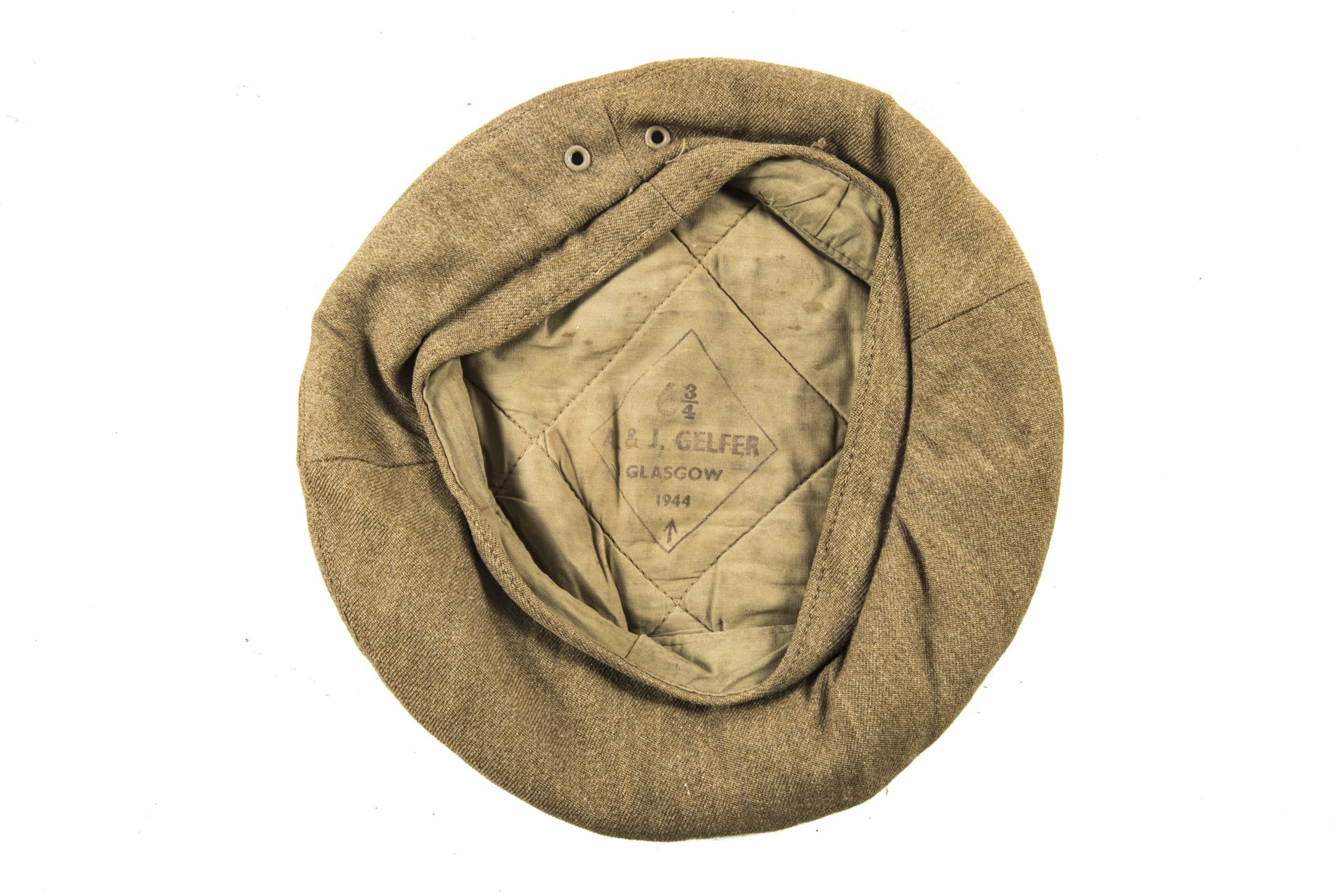 British general service beret marked A&J Gelfer Glasgow, dated 1944 and the size 6 3/4.