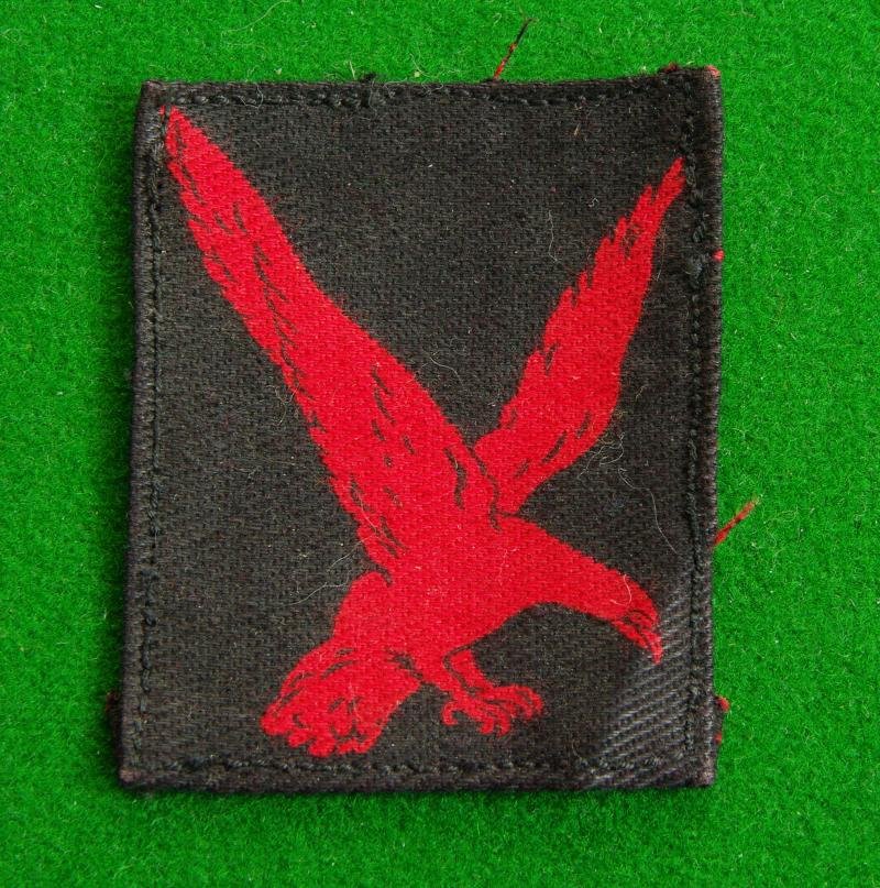 WW II printed example of the red diving eagle on a black background. This was the first Indian Division to go into action in WW II being involved in the fierce fighting in North Africa from Sidi Barrani through to El Alamein.