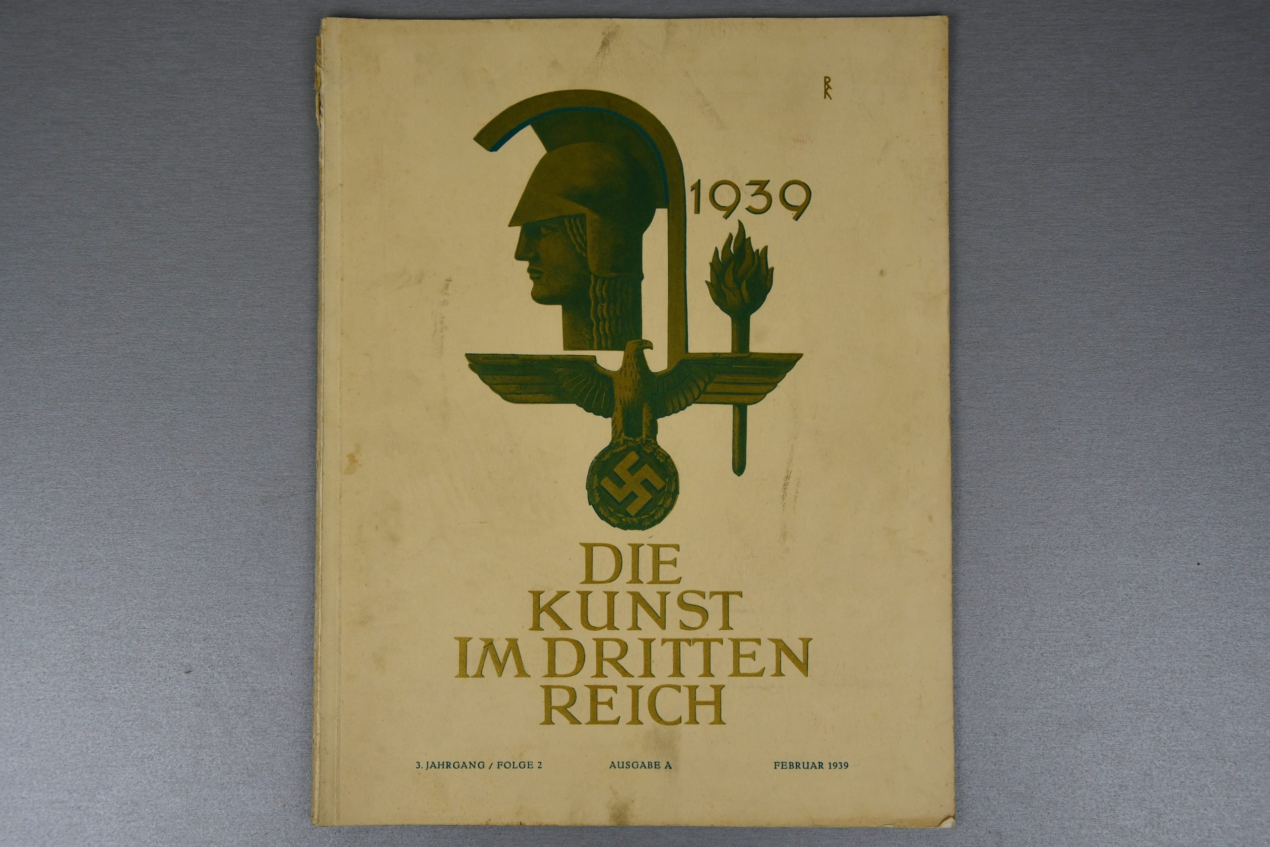 Original magazineDie Kunst im Deutschen Reich, Februari 1939 edition (3th year, issue 2, Ausgabe A), in good used condition. This slightly thicker issue is an early publication from the formative years of the Third Reich and focuses on art and culture within National Socialist Germany. The example shows light age and handling wear consistent with its age but remains complete and well preserved. A characteristic and desirable collectible within the field of Third Reich and WWII-related documentation