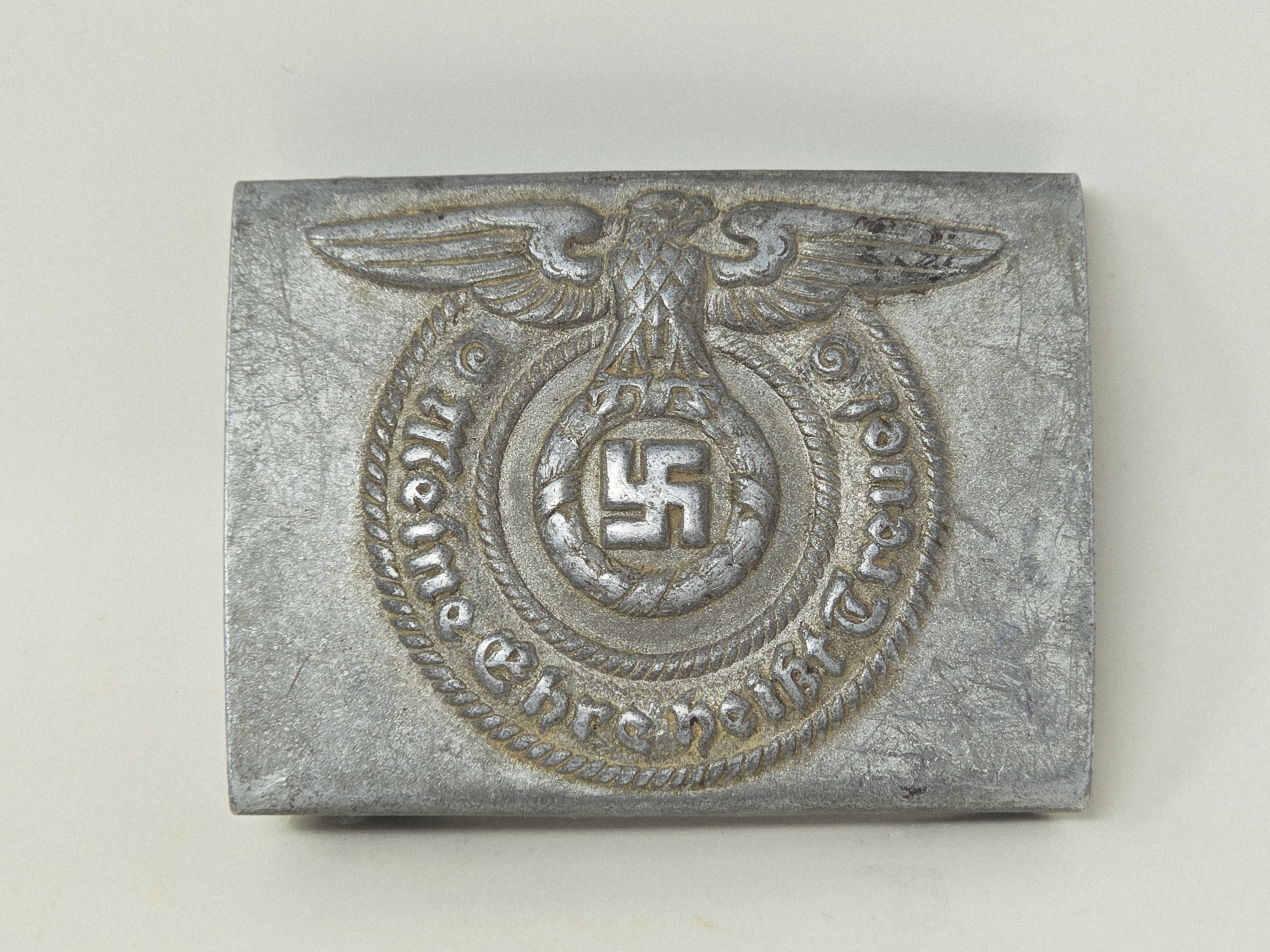 This SS EM buckle is a steel constructed, unmarked piece, retaining a lot of its silver wash finish. A great display item, COA accompanies.