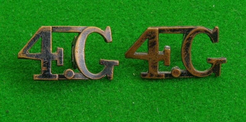 Pair of black-brass shoulder titles, ' 4.G' {Slight blacking loss}