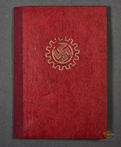 DAF Member Book-This is a Die Deutsche Arbeitsfront Mitgliedsbuch, or German labor front Member Book. It is dated 1943 and has multiple stamps and entries. Good condition!