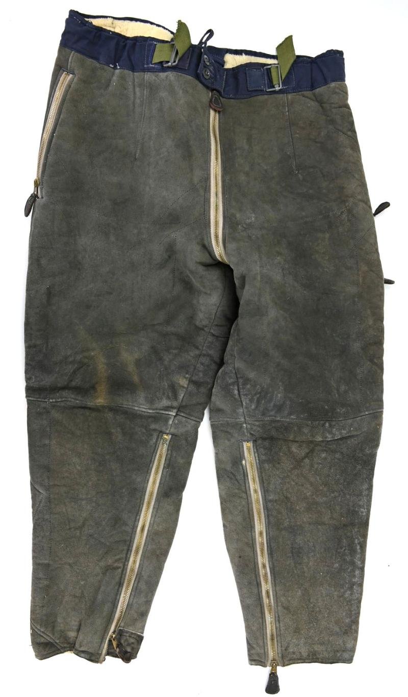 In a nice light worn condition a pair of German Luftwaffe Suede 'Channel' Trousers.The trousers comes in a good mannequin size and has removed front pockets.The zippers are made by Zipp and in a functional condition.A nice pair of channel trousers!