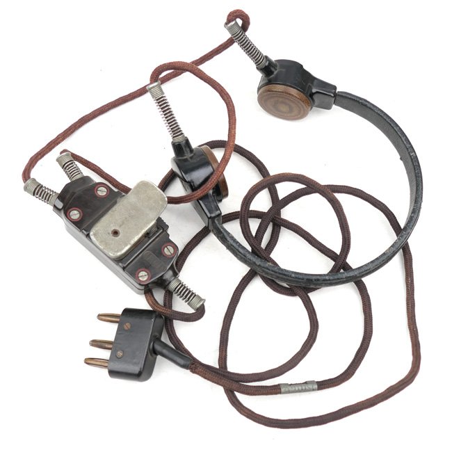 Wehrmacht Panzer Model 'B' Throat Microphone (Kehlkopfmikrofon). Marked with '(Fu)b' indicating 'Funk' model 'b'. The set is complete with its original wire and plug. Nice complete set in very good condition, hard to find piece of equipment!