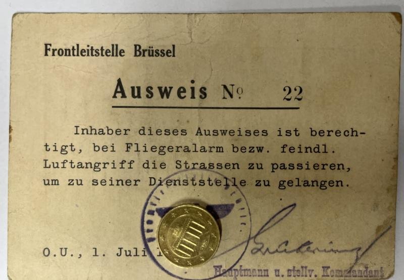 'Frontleitstelle Brüssel' permit for have free passage during 'Fliegeralarm' and/or enemy air raids.