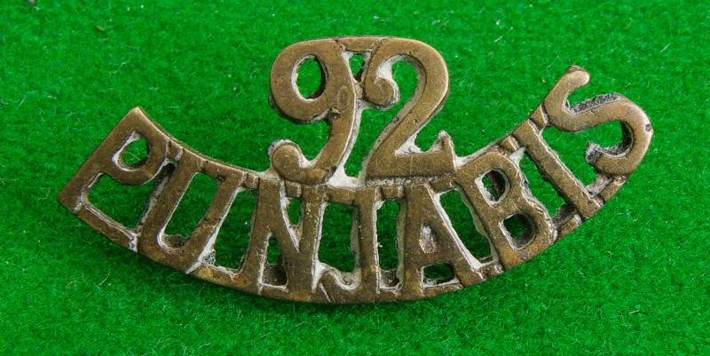 Brass shoulder title with two integral lugs to the reverse, '92 / Punjabis'