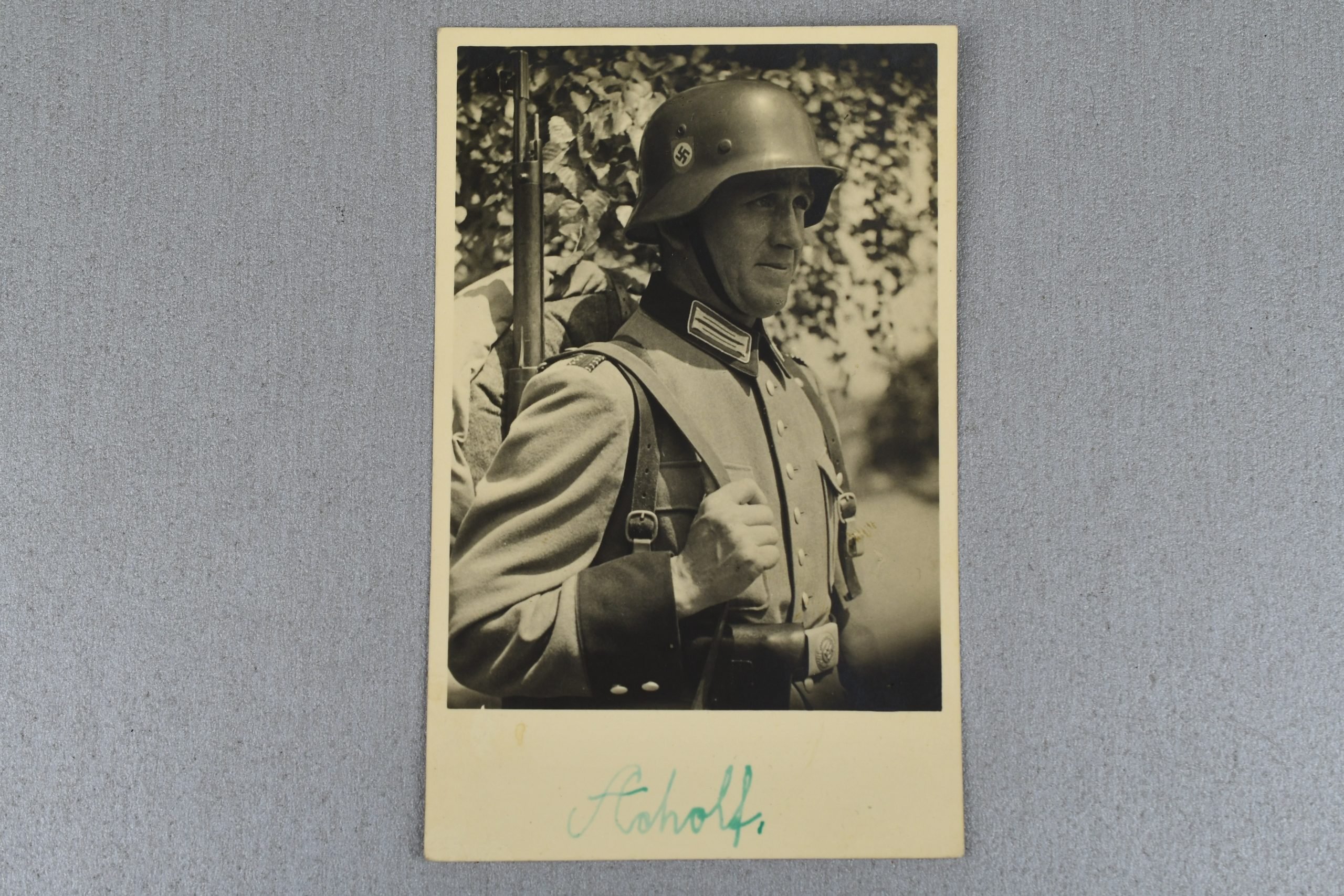 Polizei portrait photograph with double decal steel helmet 13 x 8