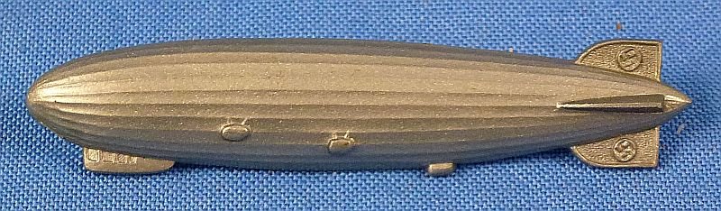The plastic tinnie is approximately 2-1/8 inches long, with pin back. The tail of the zeppelin bears swastika insignia. Excellent condition.NO CODE
