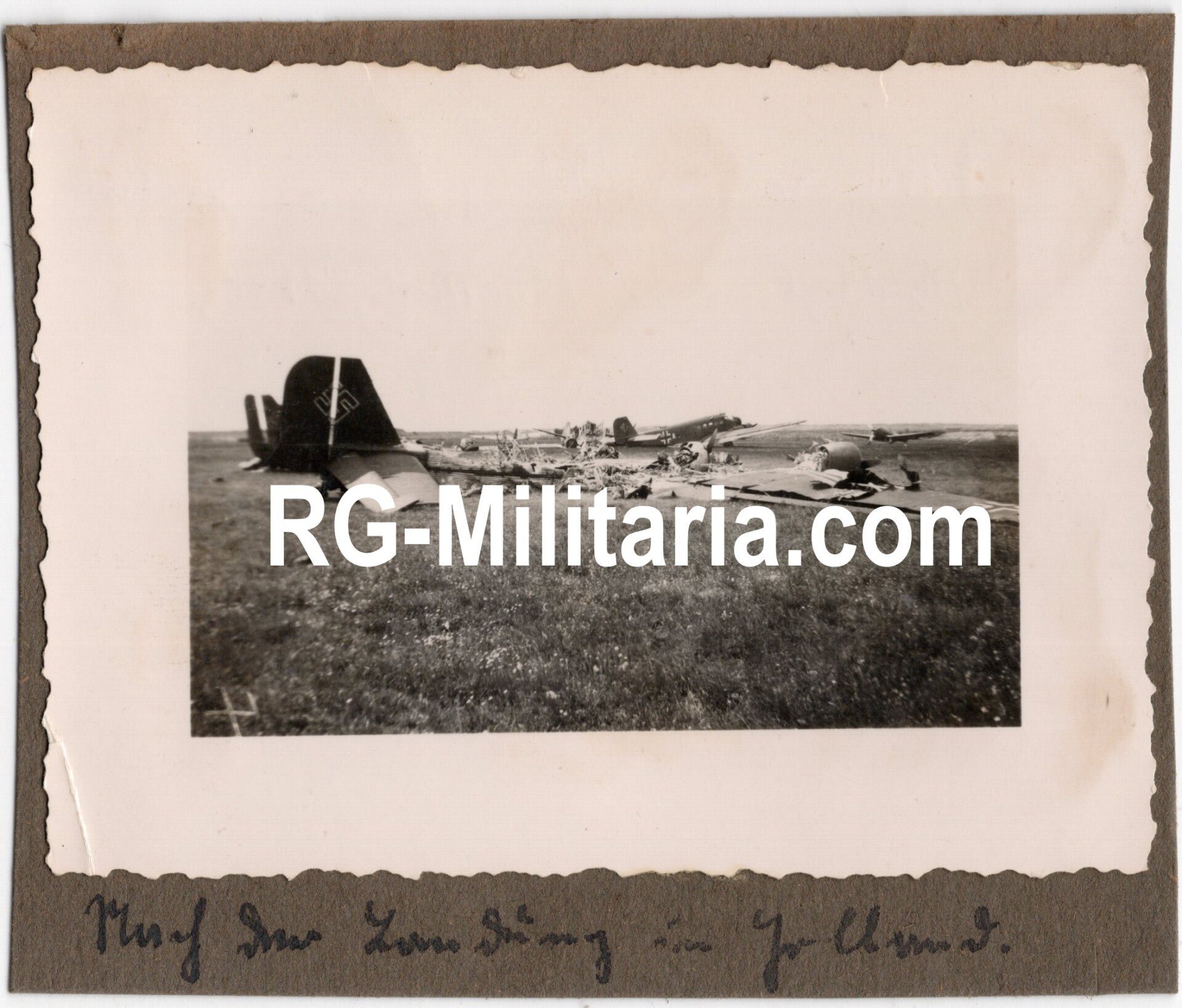 Original WW2 German Photo - Rotterdam airfield Waalhaven with destroyed Junkers JU 52 airplanes, Holland (1940)Approximately 6 x 8 cmA former owner added his information on the backside of the picture with a sticker.Originele Wo2 Duitse Foto - Rotterdamse vliegveld Waalhaven met vernietigde Junker JU52 vliegtuigen, Nederland (1940)Ongeveer 6 x 8 cmEen voormalige eigenaar heeft zijn gegevens met een sticker op de achterkant van de foto aangebracht.
