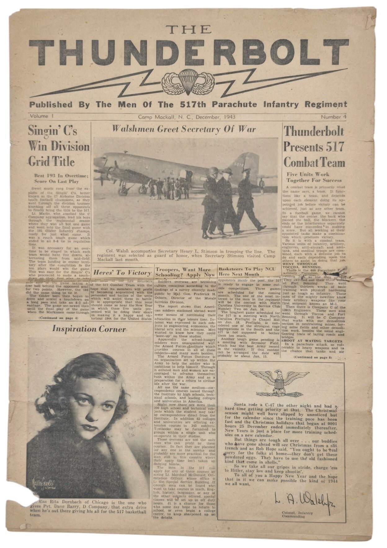 Original WW2 US Newspaper - The Thunderbolt, 517th Parachute Infantry Regiment, Vol. 1 No. 4 (1943)