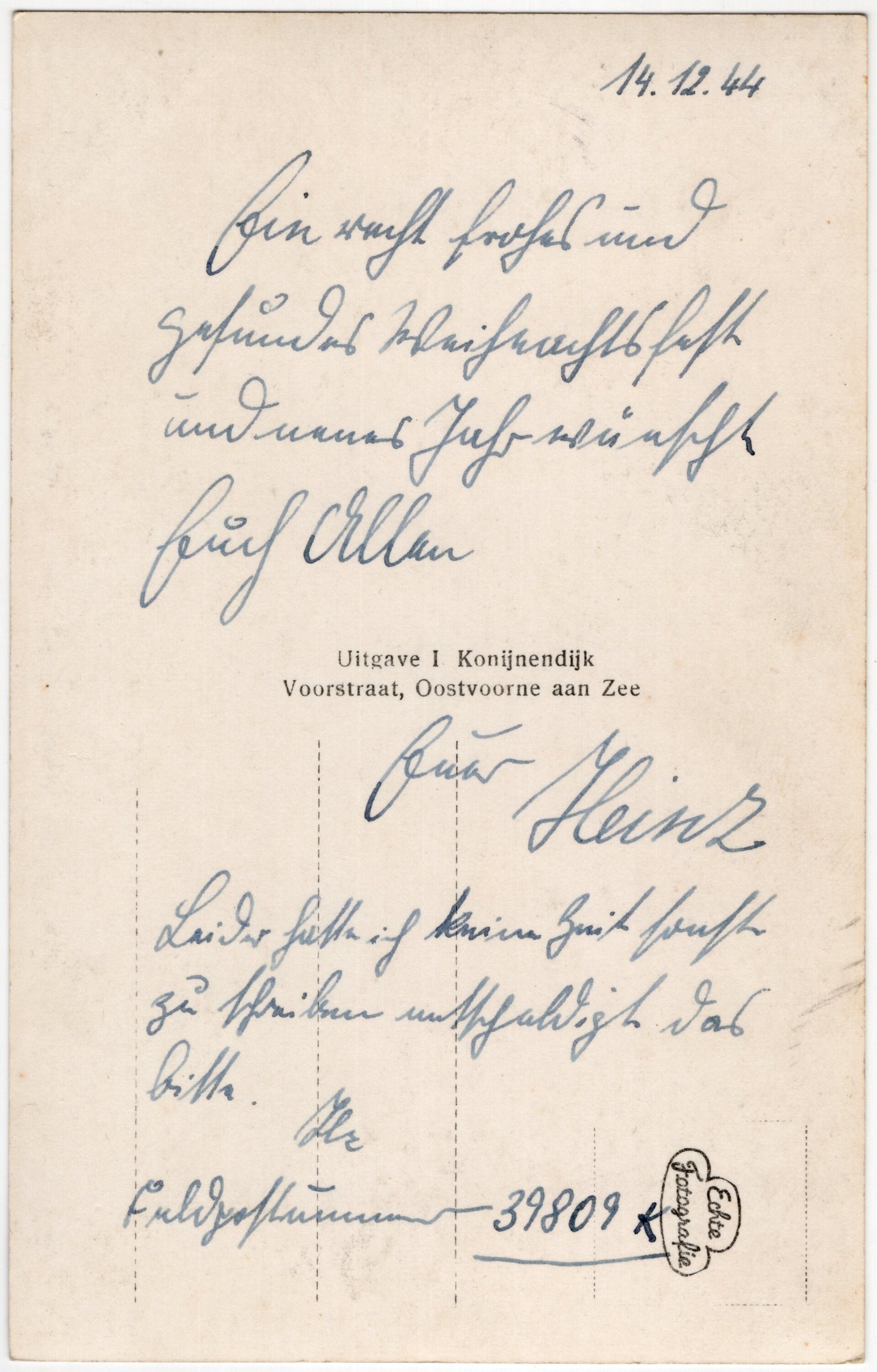 Original Dutch WW2 Postcard - Feldpost Oostvoorne aan ZeeKommando 346. Infanterie-Division (1944)Feldpostnummer 39809Kommando 346. Infanterie-DivisionOriginele Wo2 Nederlandse Postkaart - Feldpost Oostvoorne aan ZeeKommando 346. Infanterie-Division (1944)Feldpostnummer 39809Kommando 346. Infanterie-Division