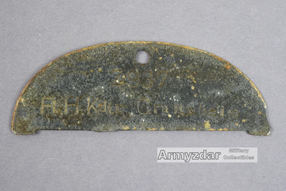 This is a nice relic half dog-tag of Luftwaffe command in Crailsheim.Fl.H.Kdtr.Crailsheim = Flieger Horst Kommandatur Crailsheim