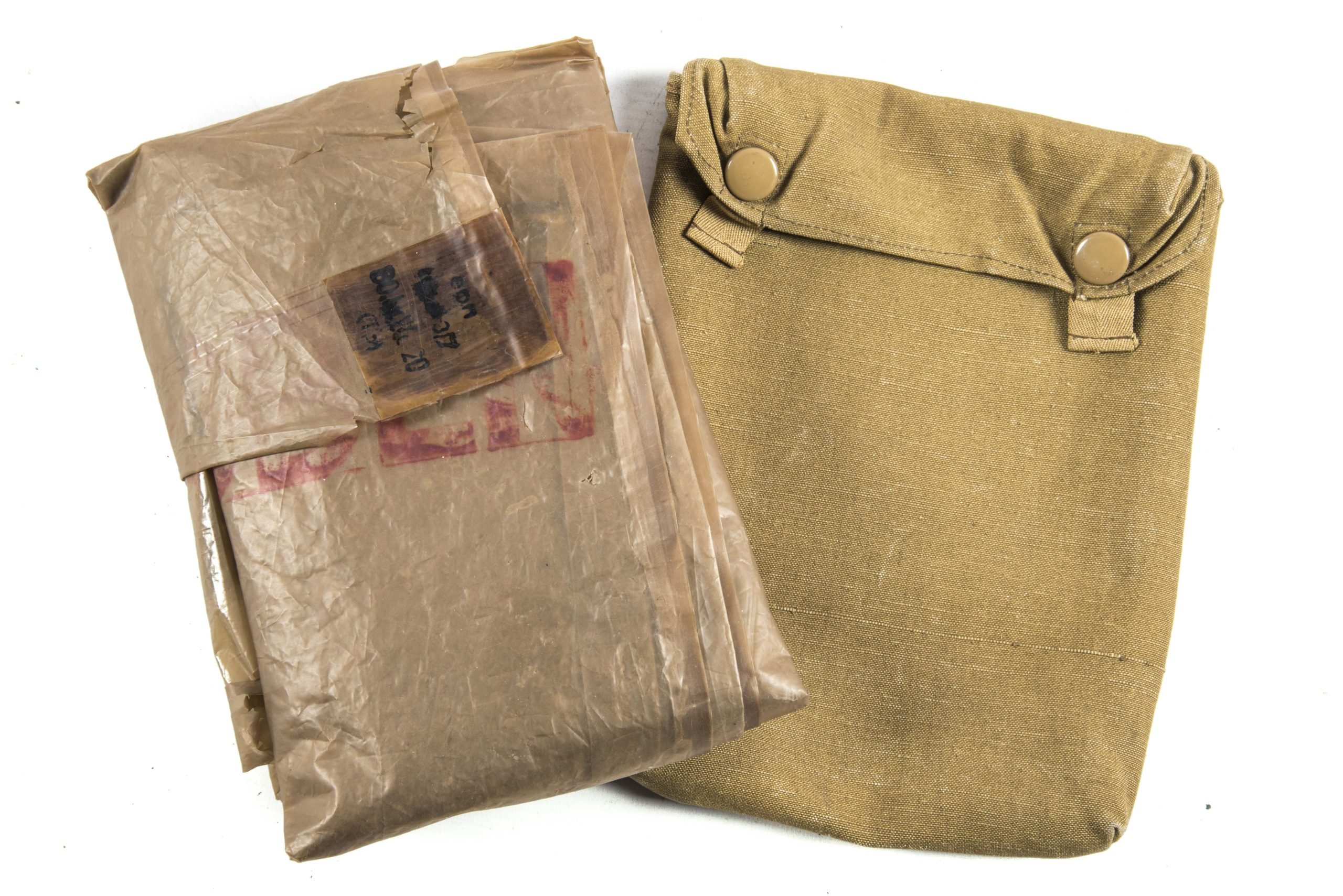 Rare late war manufactured thin rubber gascape or Gasplane in very good condition. The gascape is a rare late war manufactured example made out of very thin rubber material which you can almost see through. The gas cape has one small damage as can be seen. Hard to find a loose gascape and not just the pouch, perfect to fill up the pouch with an original gascape! Very hard to upgrade late war manufactured example!