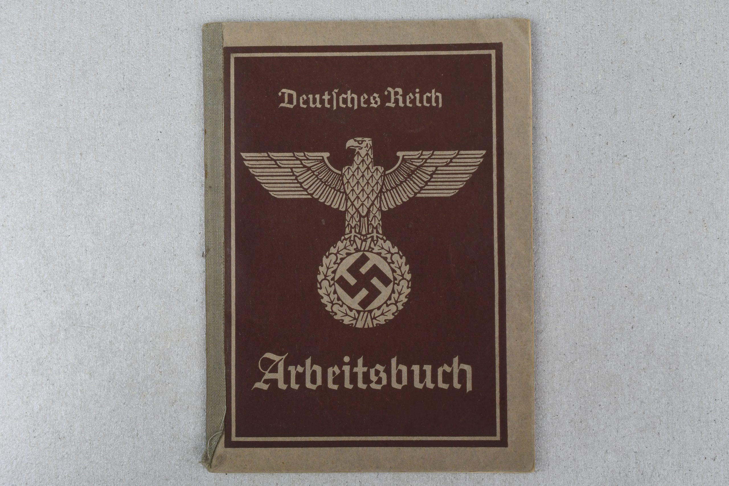 OriginalDeutschesReichArbeitsbuchissuedtoAnnaMargareteDiffine,bornon14April1924inOffweiler,KreisHagenau.ThebookletretainsitsoriginalbrowncoverwithReichsadlerandswastikaandremainsingoodoverallconditionwithclearhandwrittenentriesandofficialstamps.HerresidenceislistedasBuchsweiler,Hanau-Lichtenbergstraße91.TheArbeitsbuchbearsaclearofficialstampfromtheArbeitsamtStraßburg,NebenstelleZabern,dated3October1941.Thedocumentrecordsseveralwartimeserviceentries.DiffineperformedserviceintheReichsarbeitsdienstfrom5April1943until29October1943wheresheislistedasanArbeitsmaid.ShortlyafterwardssheservedwithintheK.H.D. (Kriegshilfsdienst)from30October1943until10August1944wheresheisrecordedasworkingasaMunitionsarbeiterin.TheseentriesreflectthetypicalwartimelaborobligationsforyoungGermanwomenofhergeneration.Anotherinterestingentryinthebookletshowsthatshewasalsoemployedearlierasadentalassistant (Hausgehilfin)atthedentalpracticeofK.PrachtinBuchsweiler,beginning1January1941andcontinuinguntil31December1944.ThiscombinationofcivilianemploymenttogetherwithcompulsorywartimeservicemakestheArbeitsbuchparticularlyinterestingasitdocumentsbothherprofessionandherwartimeduties.AveryniceandwellpreservedexampleofaThirdReichlabordocumentwithmultiplehistoricallyinterestingentries.