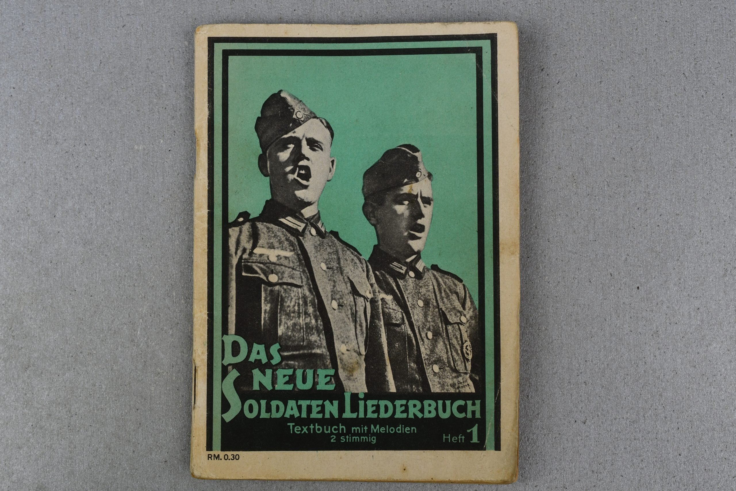 OriginalDasNeueSoldaten-Liederbuch,BandI,aGermansoldiersongbookpublishedbyB.Schott'sSöhneinMainz.Thebookletcontainsalargecollectionofwell-knownandfrequentlysungsongsusedbymembersoftheWehrmachtduringtheperiodoftheSecondWorldWar.ThecoverfeaturesaniconicimageoftwoGermansoldierssinging,atypicalvisualstyleusedforwartimepublicationsintendedtopromotemoraleandcamaraderieamongtroops.ThebookletwassoldatthetimeforRM0.30andprintedinaconvenientpocket-sizedformat.Insidethebookarenumeroussongswithfulllyricsandmusicalnotation,includingmanywell-knownGermanmilitaryandtraditionalmarchingsongs.Thealphabeticalcontentspagelistsawidevarietyoftitles,reflectingbothpatrioticandtraditionalsoldiersongsthatwerewidelysungbyGermantroopsduringthewaryears.Severalpiecesincludefullmusicalscoresallowingthesongstobeperformedoraccompaniedbyinstruments.Thebookletremainsingoodoverallconditionwithlightsignsofageanduse.Thepagesshownormalagetoningandminorwearbutremaincompleteandfirmlybound.AniceoriginalWehrmachtperiodsongbookandaninterestingpieceofwartimesoldierculturethatillustratesthemusicaltraditionsandmorale-buildingmaterialusedbyGermantroopsduringWWII.