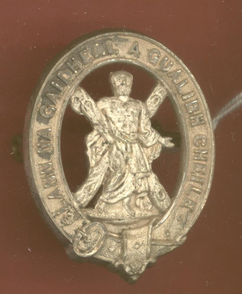 A fine scarce die stamped silver plated example worn circa 1868-80. Strap inscribed 'Clann Na Gaidheal A Gualibh Cheile' with St. Andrew and Cross tp voided centre. Two long loops to the reverse. VGCEx Hugh King