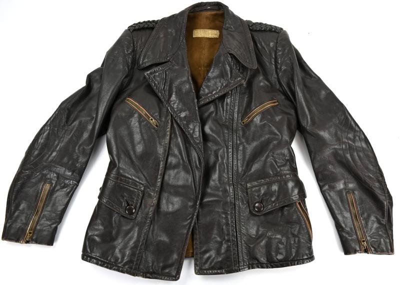 In a very good condition a German DLV Luftwaffe Leather Jacket.The early wartime, private purchased jacket comes with the Zipp marked zippers in a working condition and are also nicely DRP Nurnberg marked.The jacket comes without insignia and was very populair underneath the airforce troops.A very nice leather variant for a Luftwaffe pilot mannequin!