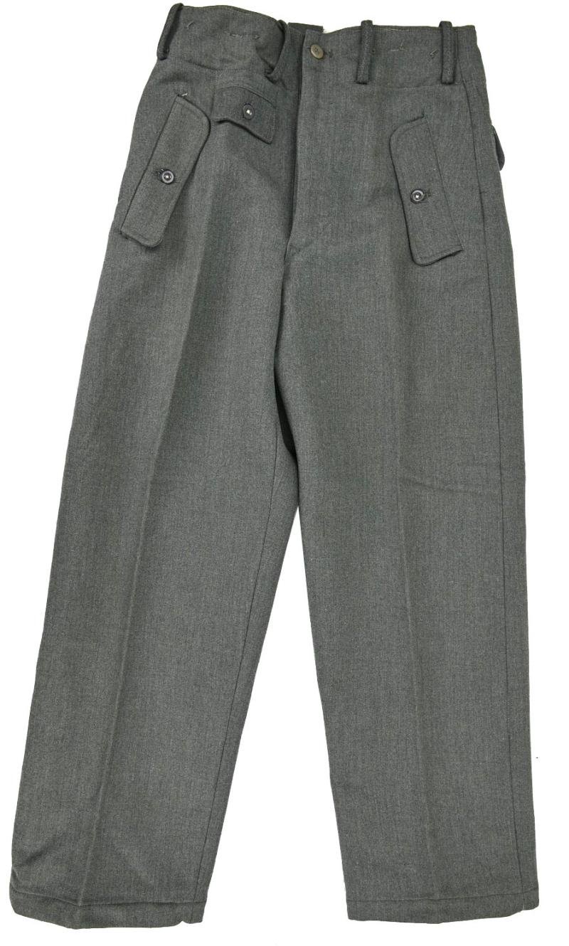 In a stunning condition a pair of German Waffen-SS M44 Pattern trousers.The trousers comes in a good mannequin size and are nicely maker marked by Betr Ra, indicating production by Betriebswerk Ravensbrück.The trousers has also the size marking stamped on the lining.The cloth is the typical italian made gabardine fabric and looks great on every SS mannequin.A very stunning and desirable pair of SS trousers!