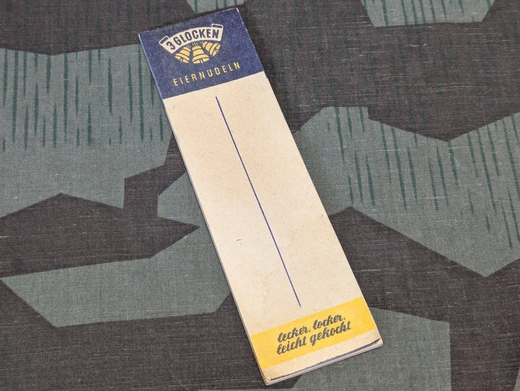 Period '3 Glocken' Eiernudlen (egg noodles) advertising notepad or receipt tablet for a cafe or store.I am not sure if any pages are missing or how many sheets were on it originally. Fairly good condition.