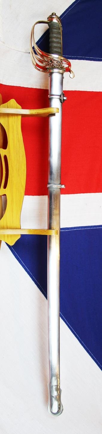 An absolute beauty of an original historical sword. Overall in superb condition. A sword that would compliment any form of decor. Exactly the form of sword used by Lt Bromhead in the Zulu war, as was portrayed and carried in the film 'Zulu' by Sir Michael Caine. One may find it very difficult indeed to see another as fine and beautiful as this sword. With its original, bright bespoke fully etched Wilkinson blade, bearing the cypher and crest of H.M. Queen Victoria, Wilkinson name and address and in such delightful condition. Gothic pieced half basket hilt, fine wire bound sharkskin grip. Bespoke made to commission order in 1878-9 by Wilkinson Sword London. Sword Maker, By Royal Appointment, To The HRH Prince of WalesTraditional gilt hilt of Gothic form, pierced with Queen Victoria's cypher, a very fine deluxe etched finest bespoke made blade, and gilt brass scabbard, that denotes the owner to be of 'field rank' that is for the use of Majors, Colonels, Brigadiers and above whilst serving within the British Infantry. More photos to add later today.Photo in the gallery from the film 'Zulu' and Michael Caine as Bromhead with his sword for information only not included.The 1822/45 pattern of sword has a Gothic hilt and Queen Victoria's cypher within the pierced oval centre. This sabre would have seen service by an officer at the very cusp of England's Glory of Empire. A sabre fit to represent the age and used throughout the Zulu War and numerous other great and famous conflicts of the Victorian era. The 1822 pattern infantry with it's elegant pierced Gothic style hilt, and the graceful monogram of Queen Victoria make it one of the most attractive patterns of sword ever used by British Army officers, and it was a pattern that saw service for almost 80 years. The blade is by Henry Wilkinson, who developed in 1845 pattern blade. Many swords of British officers were continually used for many decades, until the 1890's in fact, as swords were quite often passed on from father to son, down the generations, in many military families. During the period of this sword's use, two of most famous pair of engagements in the British army's history, during the last quarter of the 19th century, happened over two consecutive days. Curiously, it is fair to say that these two engagements, by the 24th Foot, against the mighty Zulu Impi, are iconic examples of how successful or unsuccessful leadership can result, in either the very best conclusion, or the very worst. And amazingly, within only one day of each other. The 1879 Zulu War, for the 24th Foot, will, for many, only mean two significant events, Isandlhwana and Rorke's Drift. This is the brief story of the 24th Foot in South Africa; In 1875 the 1st Battalion arrived in Southern Africa and subsequently saw service, along with the 2nd Battalion, in the 9th Xhosa War in 1878. In 1879 both battalions took part in the Zulu War, begun after a British invasion of Zululand, ruled by Cetshwayo. The 24th Foot took part in the crossing of the Buffalo River on 11 January, entering Zululand. The first engagement (and the most disastrous for the British) came at Isandhlwana. The British had pitched camp at Isandhlwana and not established any fortifications due to the sheer size of the force, the hard ground and a shortage of entrenching tools. The 24th Foot provided most of the British force and when the overall commander, Lord Chelmsford, split his forces on 22 January to search for the Zulus, the 1st Battalion (5 companies) and a company of the 2nd Battalion were left behind to guard the camp, under the command of Lieutenant-Colonel Henry Pulleine (CO of the 1/24th Foot).The Zulus, 22,000 strong, attacked the camp and their sheer numbers overwhelmed the British. As the officers paced their men far too far apart to face the coming onslaught. During the battle Lieutenant-Colonel Pulleine ordered Lieutenants Coghill and Melvill to save the Queen's Colour—the Regimental Colour was located at Helpmakaar with G Company. The two Lieutenants attempted to escape by crossing the Buffalo River where the Colour fell and was lost downstream, later being recovered. Both officers were killed. At this time the Victoria Cross (VC) was not awarded posthumously. This changed in the early 1900s when both Lieutenants were awarded posthumous Victoria Crosses for their bravery. The 2nd Battalion lost both its Colours at Isandhlwana though parts of the Colours—the crown, the pike and a colour case—were retrieved and trooped when the battalion was presented with new Colours in 1880.The 24th had performed with distinction during the battle. The last survivors made their way to the foot of a mountain where they fought until they expended all their ammunition and were killed. The 24th Foot suffered 540 dead, including the 1st Battalion's commanding officer.After the battle, some 4,000 to 5,000 Zulus headed for Rorke's Drift, a small missionary post garrisoned by a company of the 2/24th Foot, native levies and others under the command of Lieutenant Chard, Royal Engineers, the most senior officer of the 24th present being Lieutenant Gonville Bromhead. Two Boer cavalry officers, Lieutenants Adendorff and Vane, arrived to inform the garrison of the defeat at Isandhlwana. The Acting Assistant Commissary James Langley Dalton persuaded Bromhead and Chard to stay and the small garrison frantically prepared rudimentary fortifications.The Zulus first attacked at 4:30 pm. Throughout the day the garrison was attacked from all sides, including rifle fire from the heights above the garrison, and bitter hand-to-hand fighting often ensued. At one point the Zulus entered the hospital, which was stoutly defended by the wounded inside until it was set alight and eventually burnt down. The battle raged on into the early hours of 23 January but by dawn the Zulu Army had withdrawn. Lord Chelmsford and a column of British troops arrived soon afterwards. The garrison had suffered 15 killed during the battle (two di
