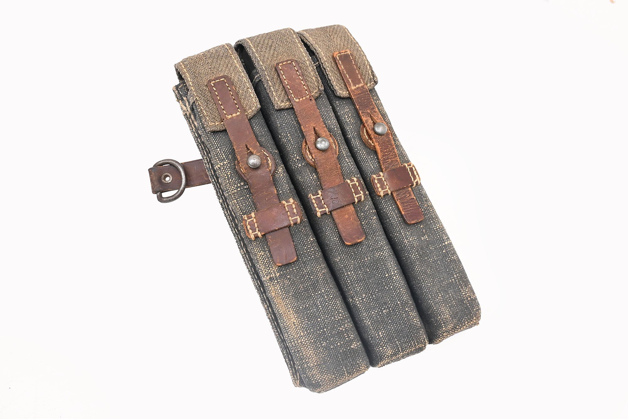 Rare MP38/40 bag in blue webbing design in very good condition.Everything is original and in good, usable condition.The bag itself is not clearly stamped and is filled with wooden slats.