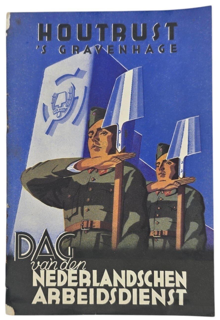 Original WW2 Dutch Collaboration NAD Brochure - Houtrust 's Gravenhage Dag van den Nederlandschen Arbeidsdienst (1942)Very rare brochure about the ''Dag van den Nederlandschen Arbeidsdienst'' held in 1942 in the Hague. The brochure was written in Dutch and German. There is minor damage to the spine (left side), and the staples have been removed.Originele Wo2 Duitse Collaboratie NAD Brochure - Houtrust 's Gravenhage Dag van den Nederlandschen Arbeidsdienst (1942)Zeer zeldzame brochure over de 'Dag van den Nederlandschen Arbeidsdienst' die in 1942 in Den Haag werd gehouden. De brochure is in het Nederlands en het Duits geschreven. De rug is licht beschadigd (linker kant) en de nietjes zijn verwijderd.