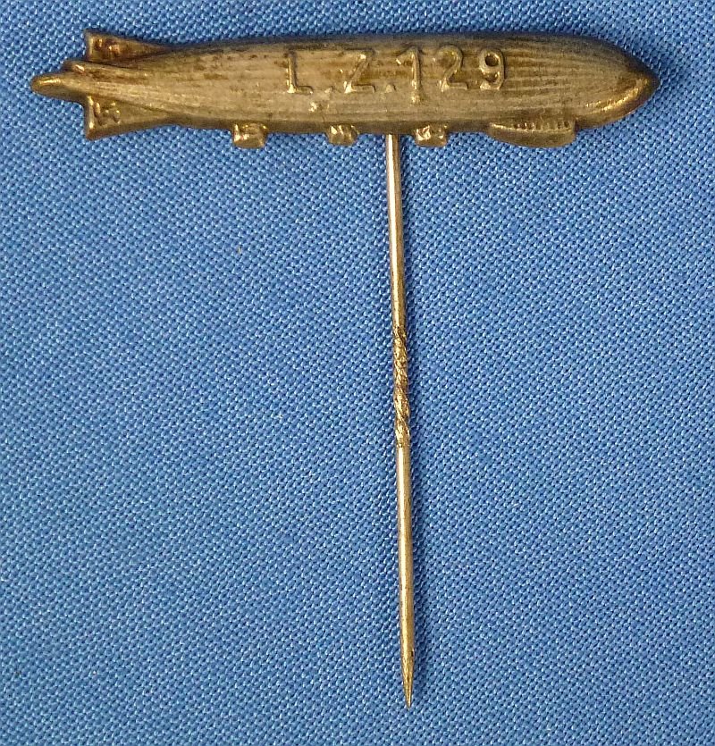 The zeppelin is approximately 1-1/2 inches long, mounted on a knurled pin. The zeppelin has swastikas on its tail. The stickpin shows uncleaned patina.NO CODE