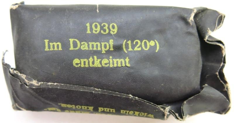 German Wehrmacht Medical Verbandstoff Medium Size Field Dressing Rubber Wrapping, 1939, Not Mint, But Unused.