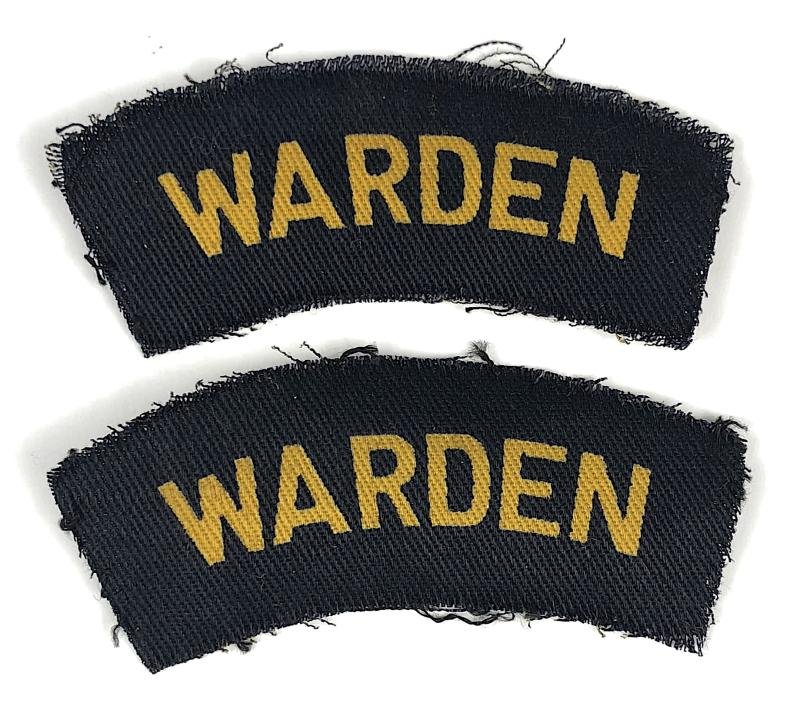 Civil Defence Warden Matching Pair of Printed Shoulder Titles Badges
