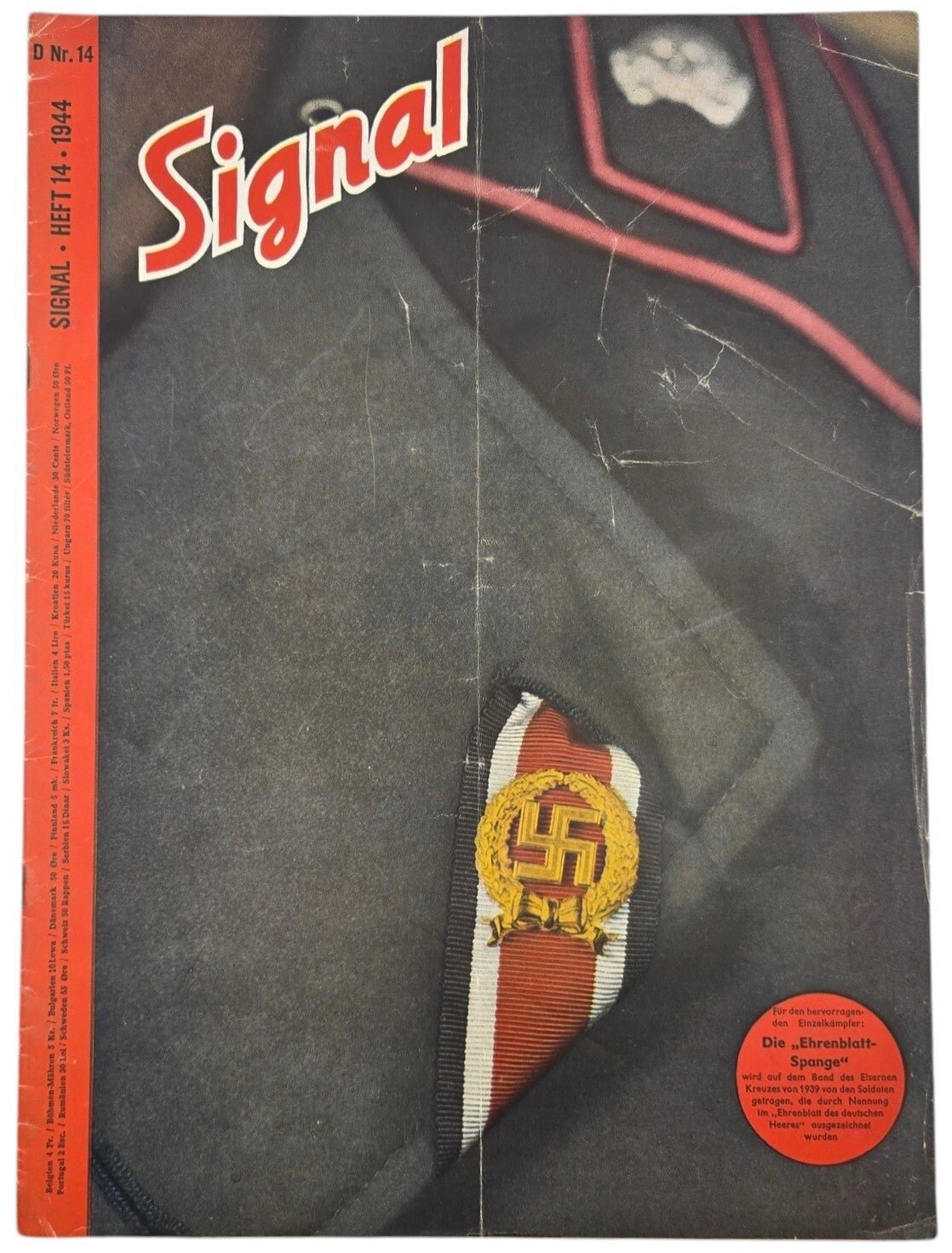 Original WW2 German Magazine - Signal No. 14, German language (1944)The German magazine ''Signal'' is probably the most iconic WWII magazine published during the war. The magazine has been published in many European languages from 1940 to the end of the nazi rule of Germany in 1945. While the wartime editions are not hard to find, the first 4 of 1940 and every edition above No. 14 from 1944 are difficult to come across.This edition is in good condition.Origineel Wo2 Duits Tijdschrift - Signal No. 14, Duitse taal (1944)Het Duitse tijdschrift ''Signaal'' is hoogstwaarschijnlijk het meest iconische Wo2 tijdschrift uitgegeven tijdens de Tweede Wereldoorlog. Dit tijdschrift is in vele talen uitgegeven vanaf 1940 tot het einde van de nazi heerschappij van Duitsland in 1945. Terwijl de oorlogse edities van Signal niet moeilijk te vinden zijn, zijn de eerste vier edities van 1940 en elke editie na nummer 14 van 1944 lastig te vinden.Dit exemplaar is in goede conditie.