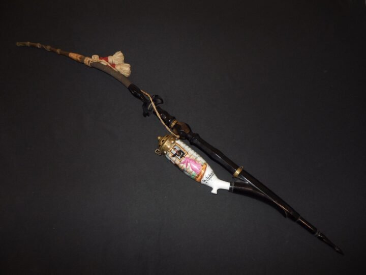You are bidding on a VERY NICE example of a WW1 Imperial PrussianMilitary Reservists Ceramic Smoking Pipe! This example is named to Gefreiter August Schoning of Infantry Regiment No. 131 and features detailed hand-painted patriotic imagery along with regimental inscriptions!These Regimental Pipes(Reservistenpfeifen)were primarily made from 1890 to 1914 and were commissioned by active duty servicemen who were coming to the end of their mandatory service. The government-mandated service was somewhat unique β men signed up at age 17 and would sign up with a specific regiment. They then stayed with that regiment for their entire term of service, including training. After completing their term, they entered into the reserves until the age of 45. For those who wanted to commemorate their service, some forethought had to be given.Typically, a group of enlisted would order their souvenirs together to reduce costs, and even then, these souvenirs would cost five to seven week's wages. Understandably, only 10% of servicemen were able to purchase these. The most popular was a walking stick (the least expensive), followed by beer steins (the most collected item today), and then ceramic hand pipes, picture frames, and schnapps flasks. Once brought home, these mementos would often be displayed on a shelf or in a cabinet rather than be used.The Pipes typically featured detailed ceramic bowls with hand-painted scenes, regimental references, patriotic imagery, and inscriptions relating to the soldier's unit and period of service.Made of ceramic, wood, and early composite materials (likely bakelite or gutta percha), this Reservist's Pipe is in VERY NICE condition! It features a beautifully hand-painted ceramic bowl with colorful scenes and detailed regimental inscriptions. The pipe is named toGefreiter August SchoningofInfantry Regiment No. 131, denoting his service with the5th Company in Metz circa 1887. The decoration remains CLEAR and ATTRACTIVE overall, including detailed scene descriptions such as: 'Where are you heading, Schoning? Home, Herr Feldwebel,' along with imagery of Schoning riding a billy goat with a woman holding its tail. Additional humorous text appears on the reverse, including: 'For heavens sake goat, don't go on. Dear August, don't leave me alone,' and 'Goat, run away, or else the old b*tch will follow me home,' followed by a commemorative inscription referencing his service duties. The pipe retains its original ornate helmet-style brass lid, and all painted scenes remain vibrant. The bowl shows NO REPAIRS and only slight age-related yellowing. The stem is constructed of wood with an early composite flexible section, showing some light looseness consistent with age but no cracks or damage. The pipe also retains its original hanging cord with tassel in white and red Overall, a VERY NICE and desirable Imperial German reservist pipe, PERFECT for any collection or display!