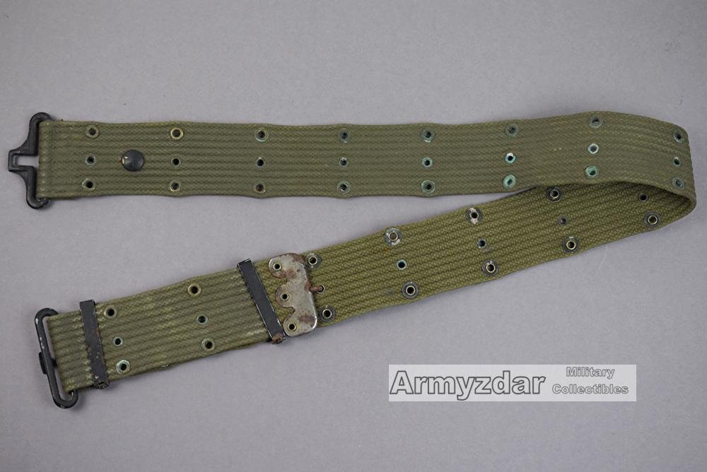 This is an original WW2 US belt. The belt was post war used in Norwegian army and they overpainted it with green color.