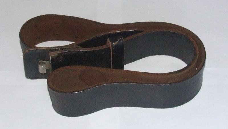 A 100cm Wehrmacht leather belt, without a buckle. Black leather belt has steel fittings, strap for attaching to buckle and a leather buckle backing. Size stamp on reverse.