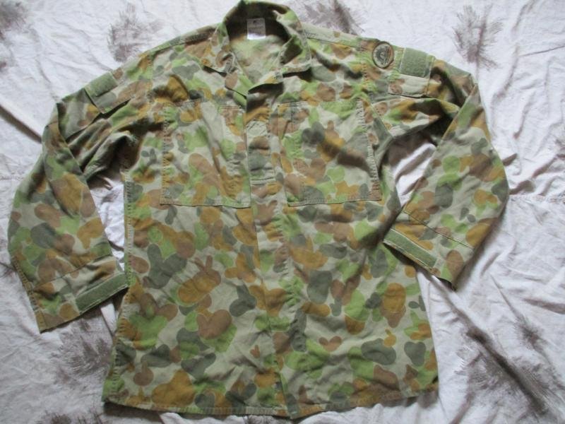 THE REAL genuine issue AUSCAM AUSTRLAIN army combat shirt ...A RARE SHIRT IN THE UKGENUINE ISSUE MADE IN AUSTRALIA BY ADA ... ISSUE LABEL INSIDEFEATURES= 2 CHEST zip POCKETS flat for wear under body armour , 2 ARM large bellow cargo POCKETS , button CLOSURE FRONT , front RANK STRAP . VELCRO ADJUSTABLE CUFFS . double thick elbowsSIZE = 100R = MADE FOR A 100 CM CHEST AND REGULAR HEIGHT = LIKE A LARGE TO XL SIZE IT MEASURES 24 INCHES OR 60 CM ARM PIT SEAM TO SEAM / 22 INCH ARM PIT TO CUFF END AND 25' SHOULDER SEAM TO CUFF END / 19 INCH SHOULDER SEAM TO SEAM / 30 INCH BASE OF COLLAR TO HEM END . now please measure your self or own shirt for size match so this fits you when it arrives and your happy with it .thanksCOLOUR = AUSTRALIAN jelly bean jungle CAMO .CONDITION = GOOD USED CONDIITON , LOOKS REAL GOOD ONE AS IN PICTURES