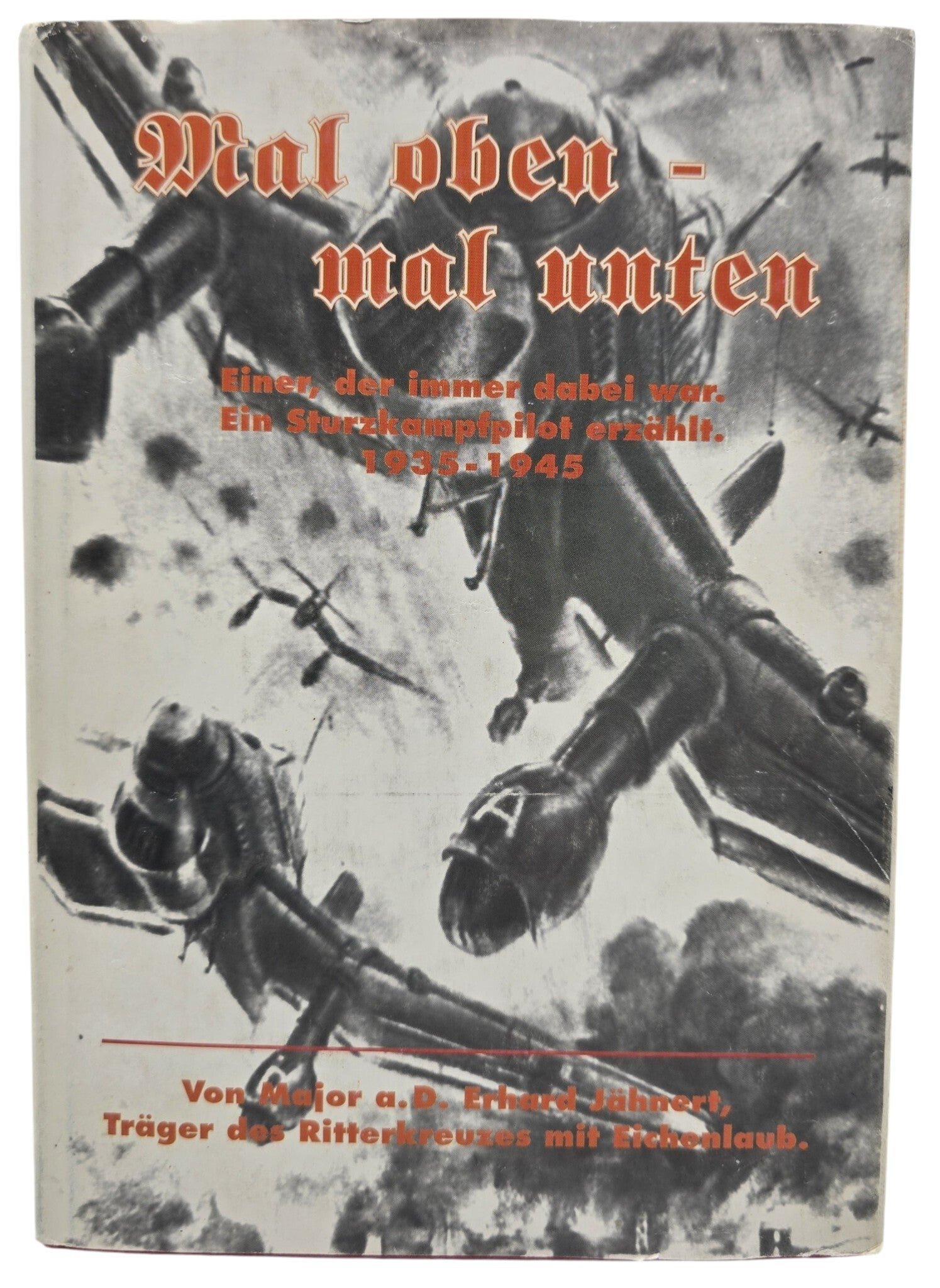 Original German Book – Mal oben - Mal unten, Erhard Jähnert, SIGNED! (1992)This book presents a personal account of a German dive bomber pilot during the Second World War, covering the years 1935 to 1945. Written by Erhard Jähnert, it offers a first-hand perspective on aerial warfare, combat missions, and the experiences of a pilot serving on the front lines. The narrative combines operational details with personal reflections, providing insight into the realities of wartime flying and the challenges faced by those involved in dive bombing operations.—Origineel Duitstalig Boek –Mal oben - Mal unten, Erhard Jähnert , Gesigneerd! (1992)Dit boek geeft een persoonlijk verslag van een Duitse duikbommenwerperpiloot tijdens de Tweede Wereldoorlog, over de periode 1935 tot 1945. Geschreven door Erhard Jähnert biedt het een directe inkijk in luchtgevechten, operationele missies en de ervaringen van een piloot aan het front. Het verhaal combineert militaire details met persoonlijke reflecties en schetst zo een beeld van de realiteit van de luchtstrijd en de uitdagingen van duikbombardementsoperaties.