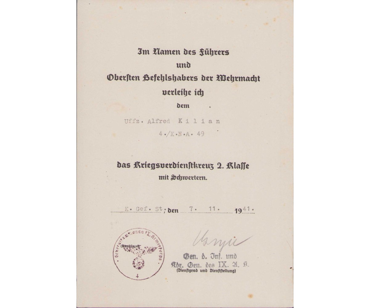 4./Korps Nachr.Abt.49 KVKII Award Document