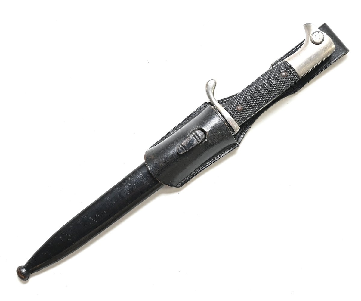 Nice Wehrmacht Dress Bayonet with black leather frog in used, but good condition.