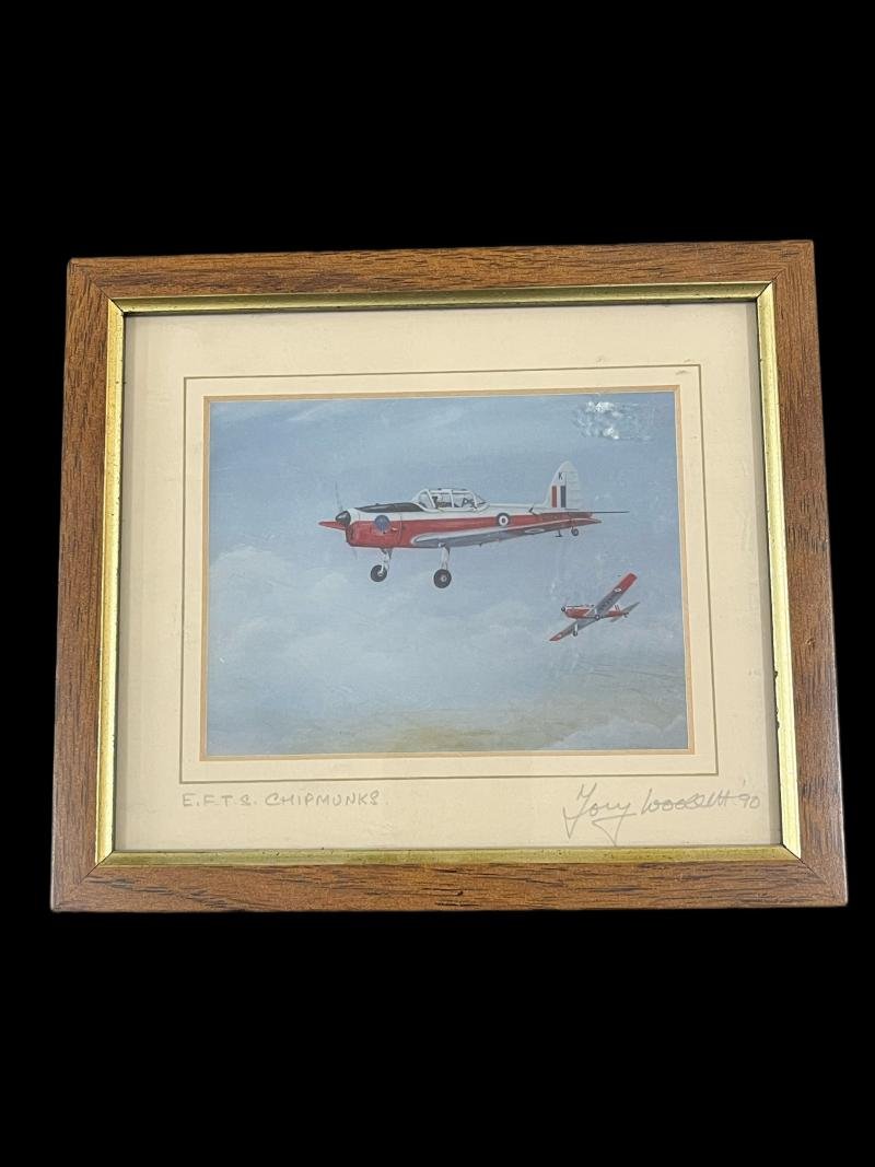 This is a nice print of E.F.T.S Chipmunks and signed by a Tony Woollett. Approx. 20cm x 17.5cm.