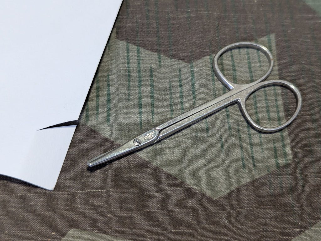 Good solid small German curved hygiene scissors. They cut well. Marked La Cross 322 Germany,