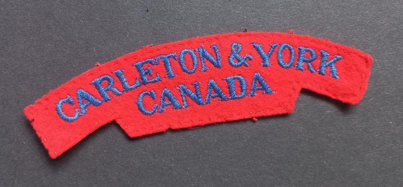 A superb issued (British made) Canadian Carleton & York Regiment embroided - paste i.e glue backing - shoulder title
