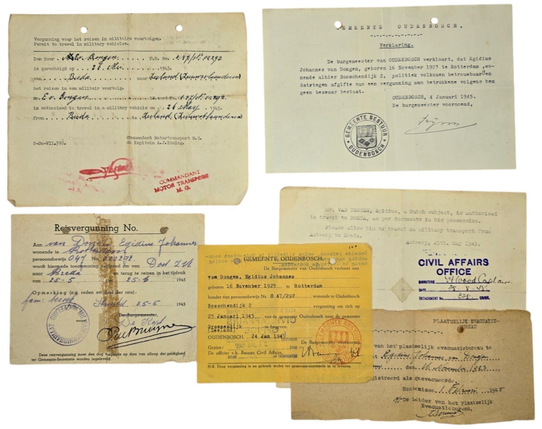Original WW2 Dutch Document - Liberation ID set Rotterdam Oudenbosch (1945)Noord-Brabant.Origineel Wo2 Nederlands Document - Bevrijding ID set Rotterdam Oudenbosch (1945)Noord-Brabant.
