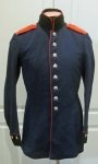 Original period manufacture. Private purchase quality dark blue wool coat with black wool collar and cuffs piped in red. Red wool shoulder straps each decorated with an embroidered number 11 on each. Silver buttons throughout including the collar rank buttons for a Gefreiter, the shoulder strap buttons display the number 2 for second company. Overall the coat is in beautiful original condition exhibiting light wear and use. The only minor details to mention would be a moth bite to the underside of the left cuff, and some wear to the top of a strip of black silk collar lining.