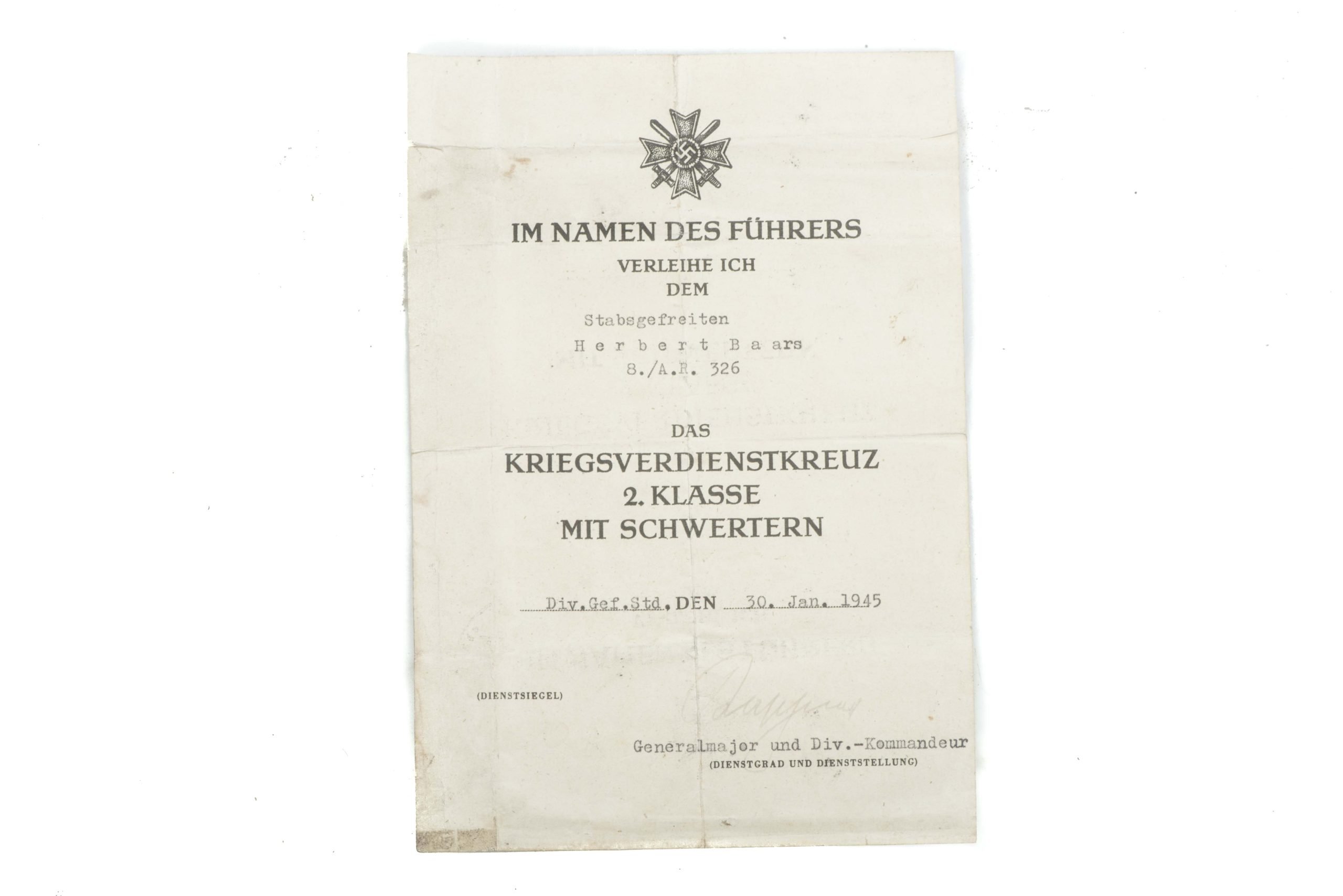 KVK II document Herbert Baars 8.A.R. 326 – Ardennes