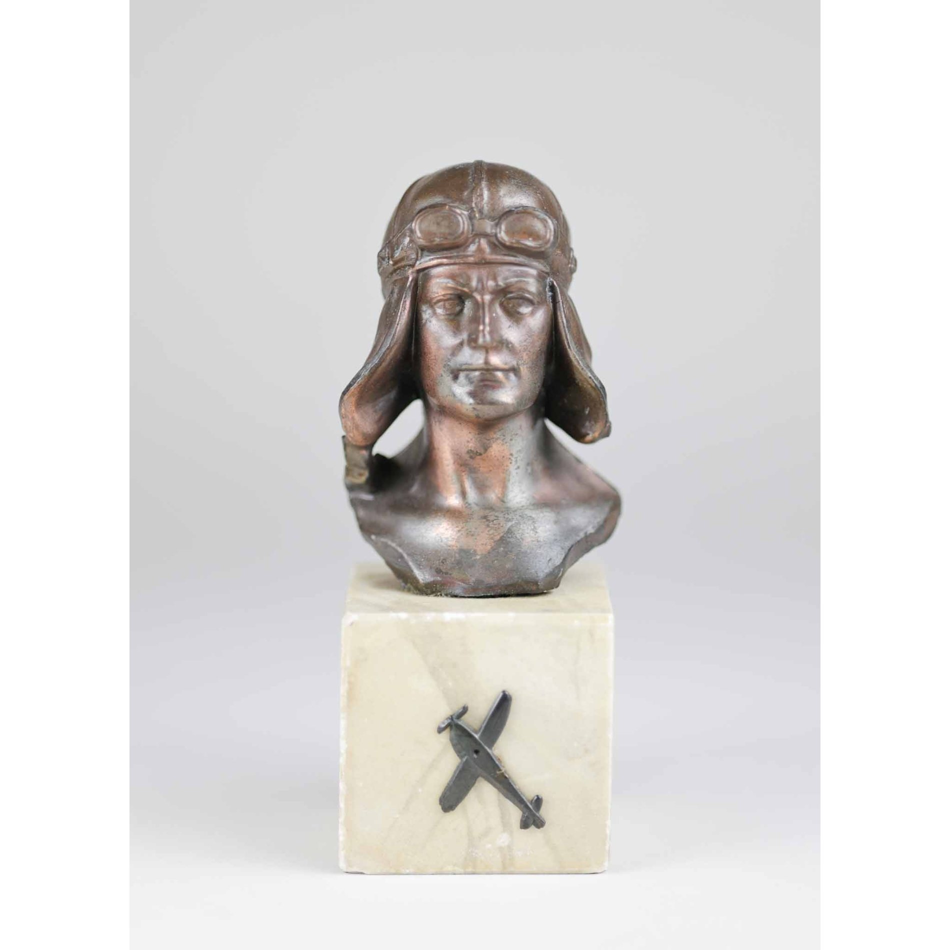 1.Weltkrieg Fliegerskulptur Pilot mit Fliegerhaube
