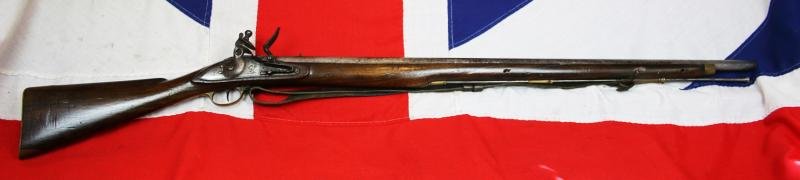 One of the 142,970 British contract made 'India Pattern' muskets turned over by the East India Co. army to the British Board of Ordnance for the Napoleonic wars, due to the urgent need for arms to counter Napoleon's massive armament reserve.The lock is stamped with primary senior ordnance inspector Richard Duce {his mark of Crown 2}. Who was also the controller of tempering & hardening of locks, after there arrival from the stores for fitting to the musket, and apparently he inspected all the EIC bess that were handed over to the British Ordnance for the Napoleonic Wars.The musket was the standard weapon issued to the British soldier throughout the 18th and early-19th centuries. It would be the 'India', also known as the 'Third Pattern' Brown Bess musket that would play a central and pivotal role in the wars against Revolutionary and Napoleonic France.By the end of the American Revolutionary War in 1783, the British Army was armed with the Pattern 1777 and Pattern 1779(S) Short Land Pattern musket. This was a musket made to the strict quality guidelines of the Board of Ordnance, and was characterised by its 42 in barrel. After the war the expectation was for a period of peace, a time when the need for Ordnance materials would be low, so the standing contracts for the Pattern 1777 and the Pattern 1779(S) musket were cancelled. Parliament was not prepared to fund equipment it deemed unnecessary, so financial retrenchment was the order of the day. No change there thenThe world changed in 1793, a mere 10 years after the loss of the American colonies. Britain found itself once again at war, this time with Revolutionary France. An army now reduced in size to an authorized strength of only 44,432 men had to be expanded rapidly, along with the local militia and volunteer forces. The call for muskets was huge. Indeed, in 1793 the total stock of muskets in armouries around Britain, including the central arsenal at the Tower of London, was around a mere 60,000. The stocks held in French arsenals amounted to over a very sensible 700,000.Something needed to be done. At first the Board of Ordnance tried to ramp up production of the Short Land Pattern muskets by engaging new contractors. Yet despite producing over 31,000 muskets in 1793 the numbers were still woefully inadequate for the expanding forces.The Board of Ordnance had to fill the gap. They did this by ordering 10,000 muskets from the Birmingham gun trade and 10,000 from their usual emergency suppliers in Liege, Belgium. However this was still not enough, especially as the private contractors in both Birmingham and London were hard at work fulfilling orders for the private trade and for the East India Company, one of the biggest private purchasers of military arms. To begin to solve this lack of supply the Master General of the Ordnance, the Duke of Richmond, suggested to the government that they persuade the East India Company to sell their stocks of muskets to the government and also to agree not to place any further orders until the Ordnance's requirements were met.The duke wrote to the Home Secretary, Henry Dundas, on the matter. As Chairman of the Board of Control of the East India Company Dundas had earlier been instrumental in securing parliamentary approval for the renewal of the East India Company's monopoly. The duke stated that he was: 'aware how unpleasant it must be to take such a step, and to deliver out to our troops these East India Company muskets, but ... the least important must give way to the most; and you will be best able to judge whether the East India Company can admit of a delay in respect of theses arms. And altho' they might not be quite so perfect as ours, they undoubtedly must be serviceable ones, and such as the new Raised Corps must put up with on the current Emergency.'This suggestion was met with agreement, and the idea of introducing the East India Company's arms into British Army service was conceived. By the end of 1794 the East India Company had delivered 29,920 muskets into government stores, all that they could spare. Indeed transactions for East India Company muskets would continue throughout the duration of the Revolutionary and Napoleonic wars. By 1815, the East India Company had sold the Board of Ordnance at least 142,970 small arms.The musket that the East India Company supplied was one originally designed by General Lawrence for East India Company service, altered and simplified by Lieutenant Colonel Edward Windus in 1771. The musket in Company service became known as the 'Windus' pattern. In 1795, the Board of Ordnance began to order 'India Pattern' muskets on its own account and by 1797 it officially adopted the musket as the Model 1793 and began to place substantial orders for it with the Birmingham gun trade.The Model 1793 India Pattern musket was standardized by the Board of Ordnance in 1797, taking account of its comparable cheapness, simplicity of design and ease of manufacture. By the end of 1797, the Birmingham gun trade was able to deliver some 72,000 muskets to the government proof house at Bagot Street. The success of this model was self evident, along with its slightly modified successor the Model 1809 India Pattern. They produced at an average price of 18 shillings and 5 pence (roughly £3,000 in today's money).This fabulous example was one of those desperately required Brown Besses.The Brown Bess musket was the standard weapon of the British infantry for more than a century. Soldiers on both sides of the War of 1812 employed it in battle, staring down its barrel at opponents across distances of less than a hundred yards.Flintlock musketThe Brown Bess musket was the standard weapon of the British for more than a century.British foot soldiers marched into battle with this musket—nicknamed 'Brown Bess'—for more than 100 years. British redcoats used the Brown Bess to fight the War of Independence in the colonies, and many of their opponents in the Americans' Continental army used it