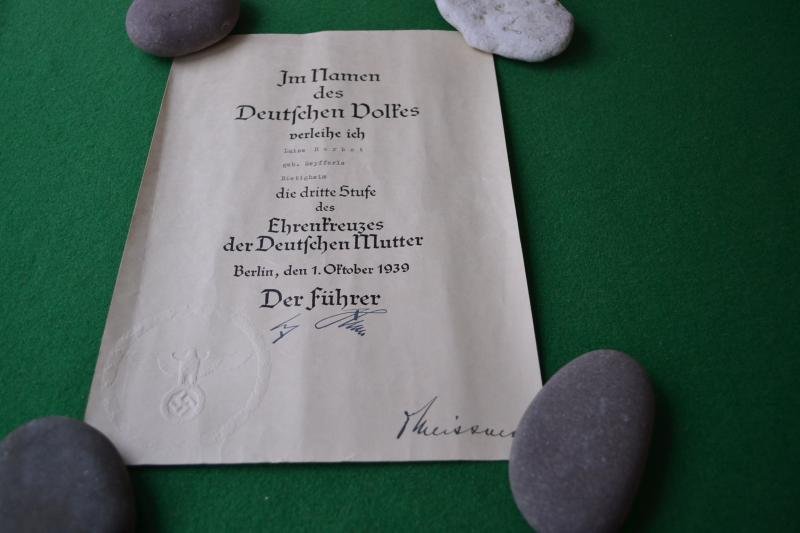A third class certificate awarded to Luise Herbst in Bietigheim 1939, the item also comes with a letter of congratulations from the Ortsgruppenleiter.